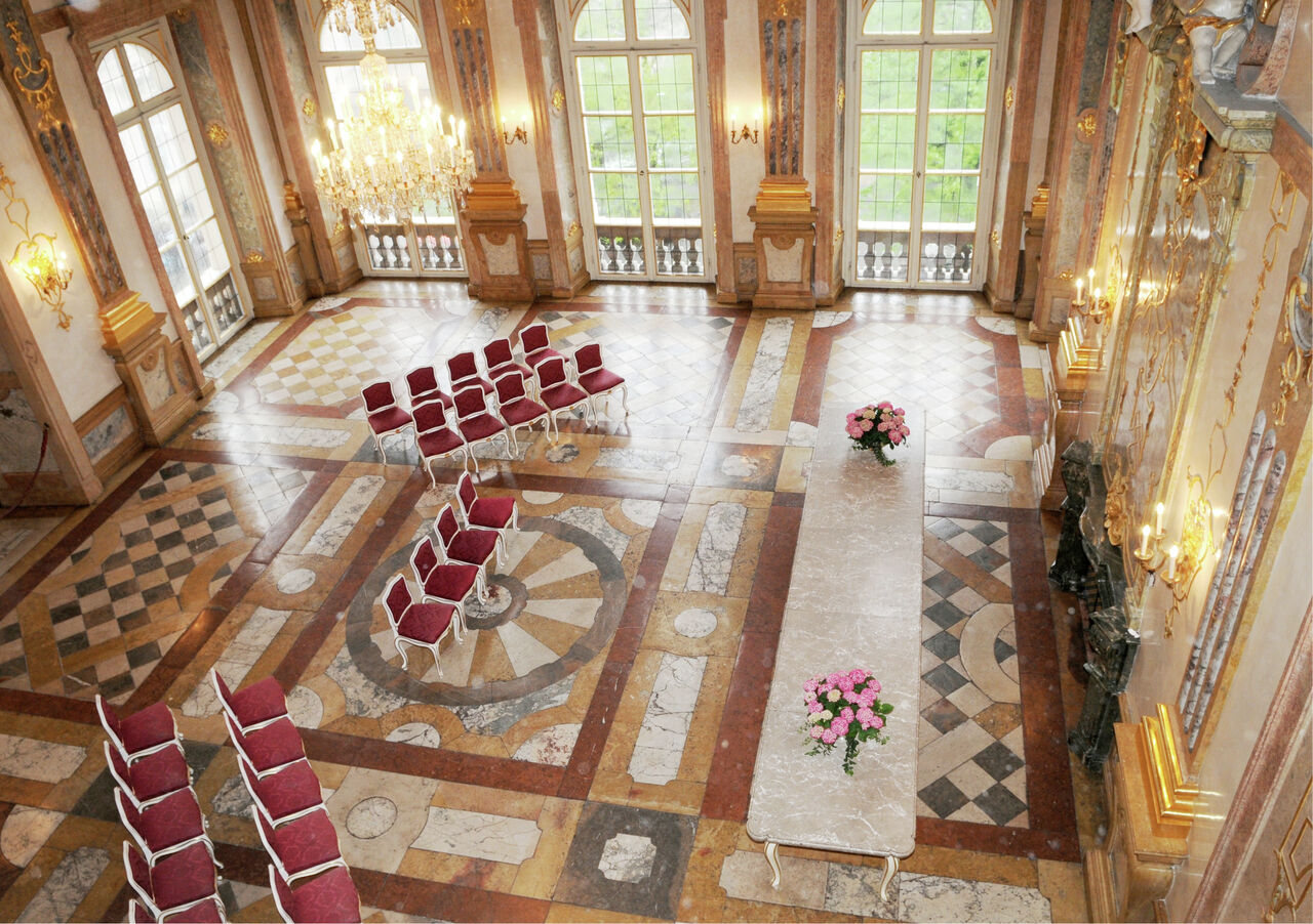 im Schloss Mirabell begrüßen können. Im Marmorsaal selbst gilt